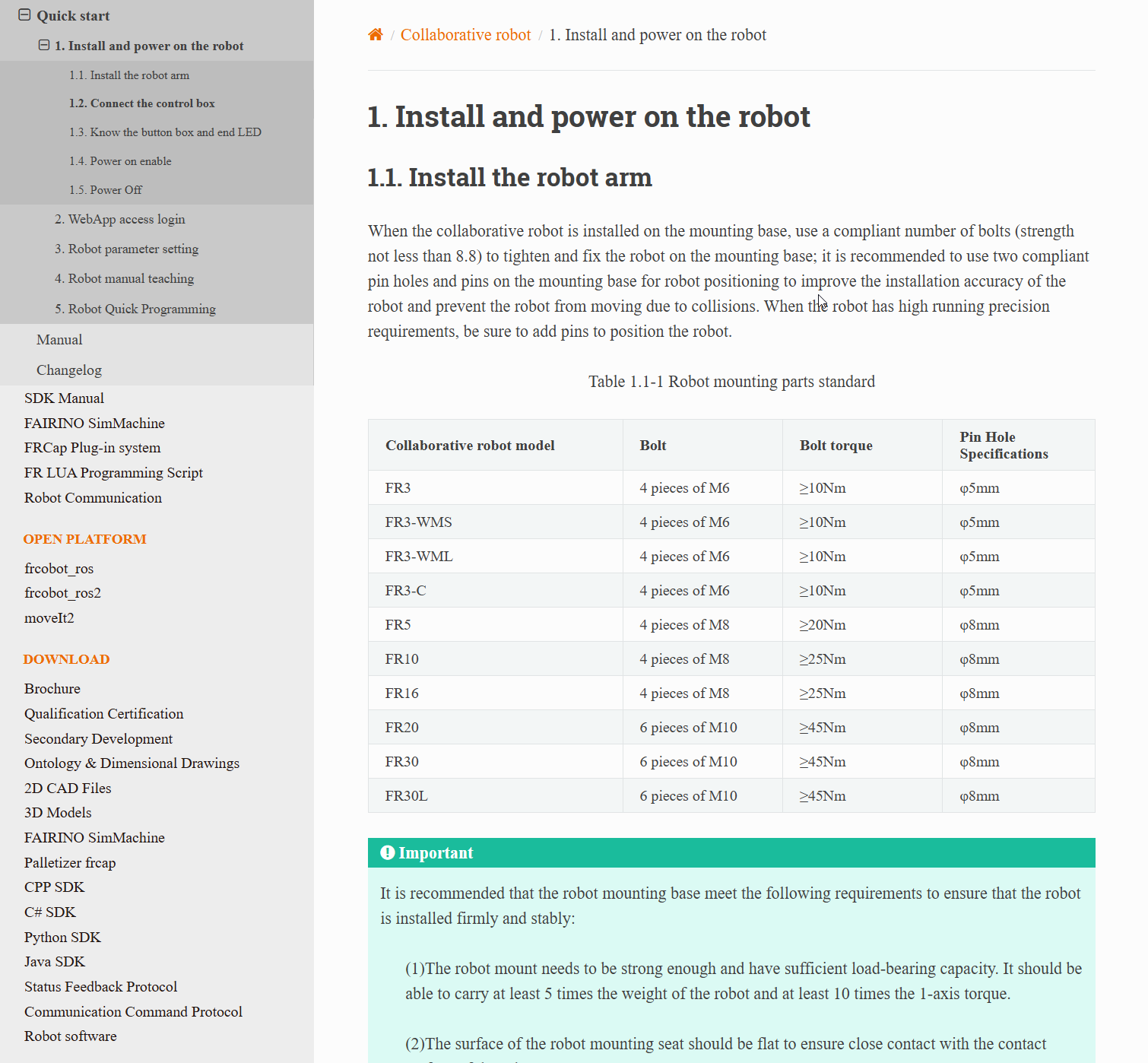 Stáhněte si zde všechny základní návody a instrukce, které potřebujete k rychlému začátku s coboty Fairino. Pro zákazníky Inlux Robotics jsou navíc k dispozici další možnosti podpory, jako je Fairino Training Academy a Fairino Expert Support.